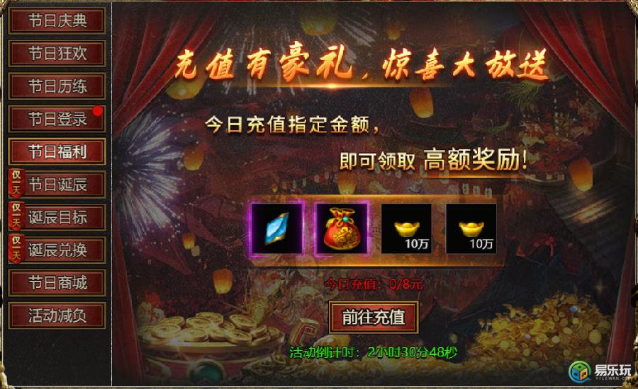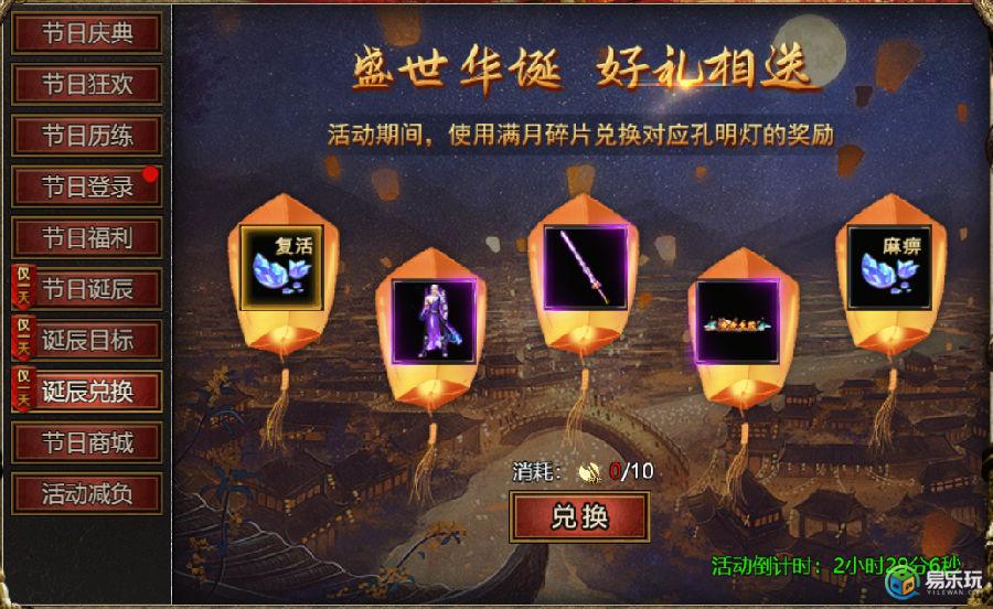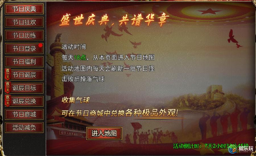 【活动内容】:每天18点可进入节日地图,打节日怪,掉灯笼,换极品外观!