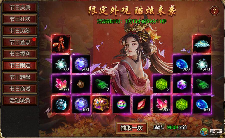 【活动内容】:使用灵符购买限定碎片并进行抽取奖励,抽满奖励全部获得。