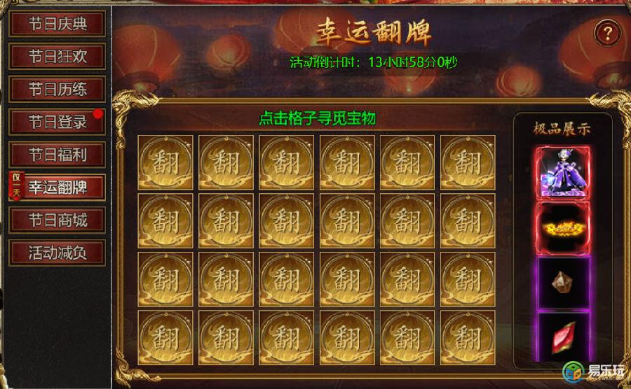 【活动内容】:活动期间,可消耗幸运之力进行翻牌,全部翻完奖励全部获得!