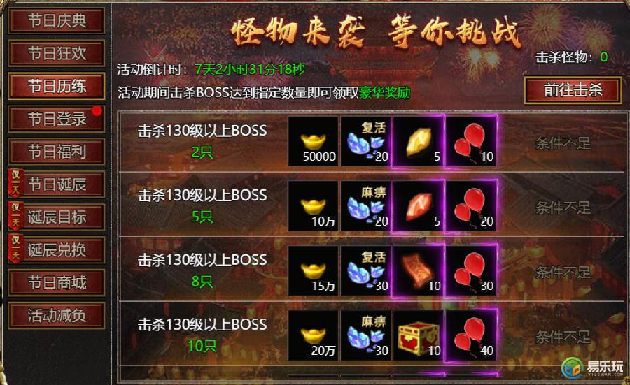 【活动内容】:活动期间,击杀怪物达到指定数量,领取奖励!