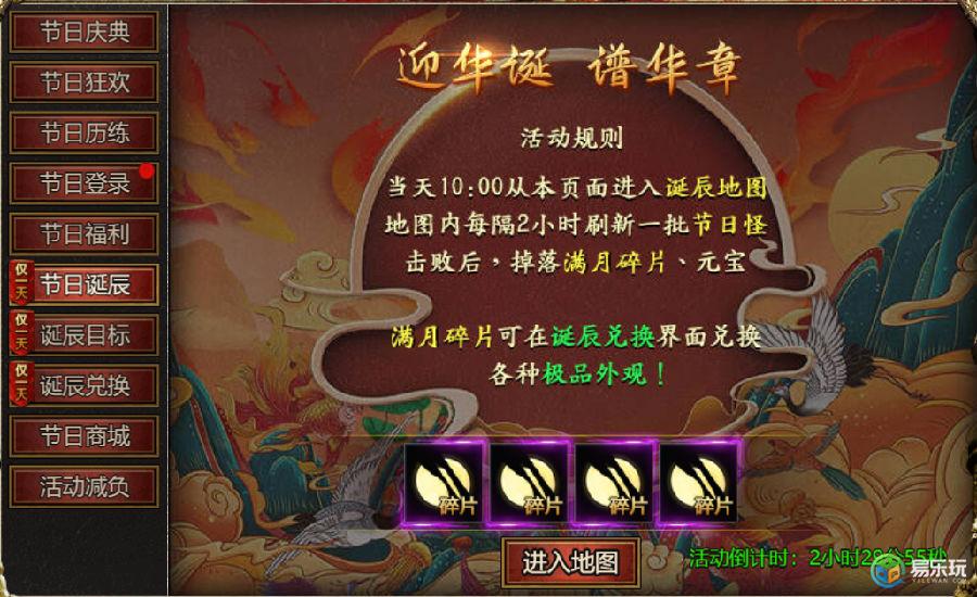 【活动内容】:当天10点开始,进入诞辰地图击败节日怪,收集勋章碎片可在诞辰兑换中兑换活动外观!